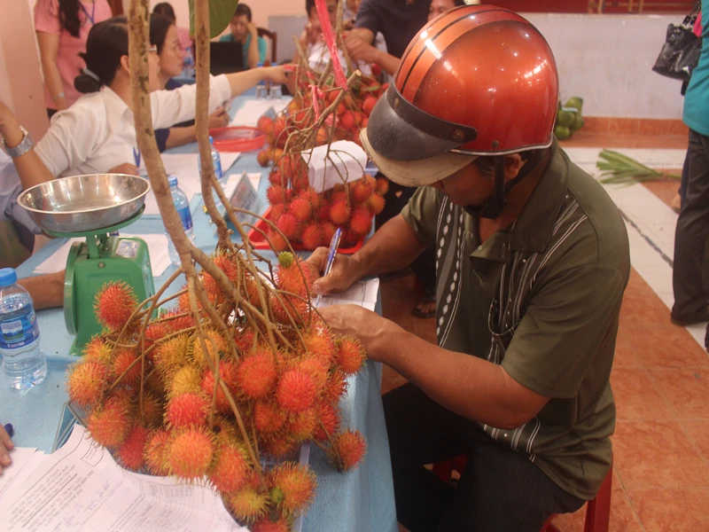Nông dân Nguyễn Tự Toại (xã Sơn Định, huyện Chợ Lách) tâm sự: “Năm nay tôi đem đến dự thi trái ngon với sản phẩm là chôm chôm nhãn. Trong quá trình làm vườn tôi đã trồng được giống chôm chôm nhãn có chùm trái sai, trái to, màu sắc đẹp hơn so với những nhà vườn khác nên rất háo hức đem dự thi vui chơi, giao lưu cùng các nhà vườn khác”.