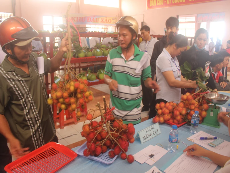 Nông dân hào hứng đem sản phẩm trái cây ngon dự thi