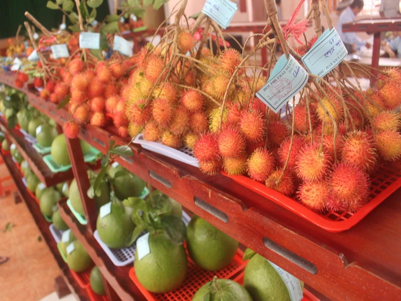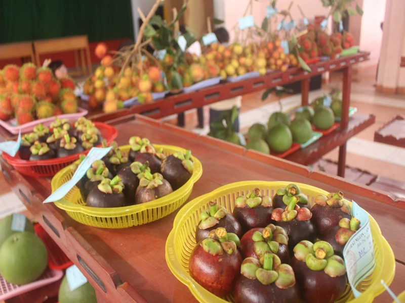 Gần 100 sản phẩm trái ngon của nhà vườn trong và ngoài tỉnh đã đem đến lễ hội dự thi các giống trái ngon, an toàn như: Bưởi da xanh, sầu riêng Ri6, sầu riêng Monthong, các loại sầu riêng giống mới, chôm chôm Java, chôm chôm nhãn, măng cụt, nhãn xuồng… Đây là những loại trái cây đặc sản mà nông dân đã dày công chăm sóc cho trái ngon, an toàn, chất lượng.