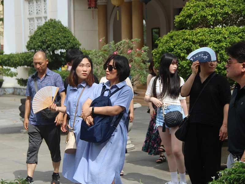 Khách du lịch Hàn Quốc tham quan chùa Linh Ứng và Hội truyền giáo thánh Cao Đài. Ảnh: T.AN