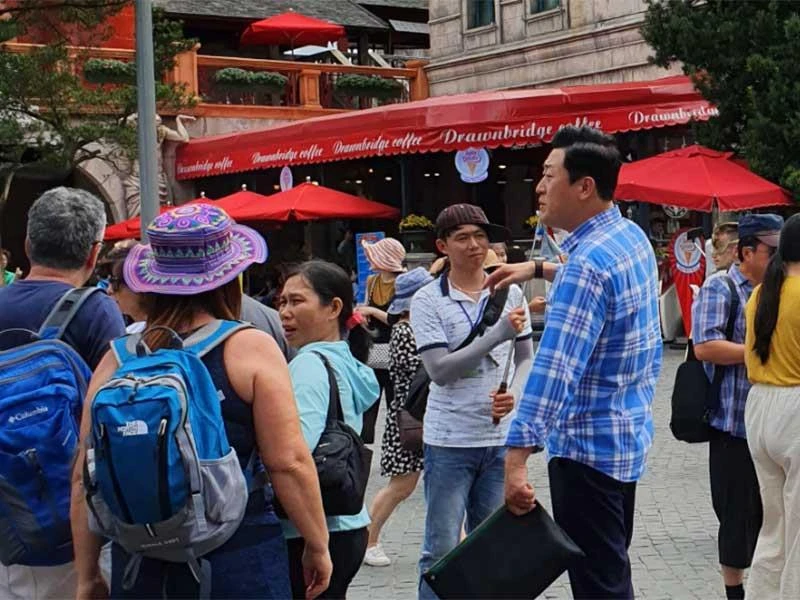 Trưởng đoàn Hàn Quốc đang thuyết minh với khách tại Bà Nà Hills. Ảnh: HD