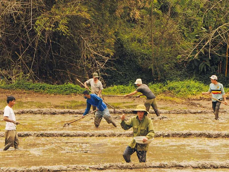 Người dân buôn A Lê B ở thành phố Buôn Ma Thuột vẫn cầm cự làm ruộng lúa bằng nguồn nước ô nhiễm từ suối Ea Tam.