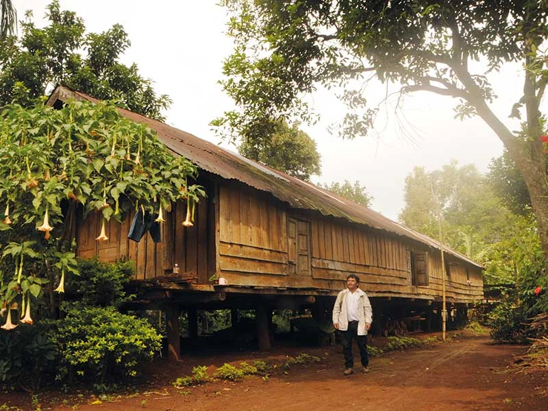 Một căn nhà dài Ê Đê truyền thống ở buôn Ko Tam đầu nguồn.