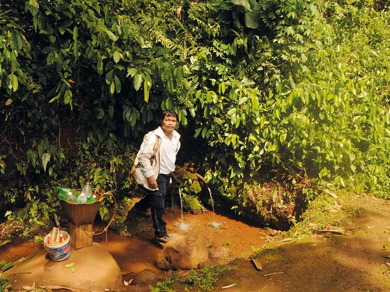 Tác giả bên Giọt nước Ea Tam ở thượng nguồn.