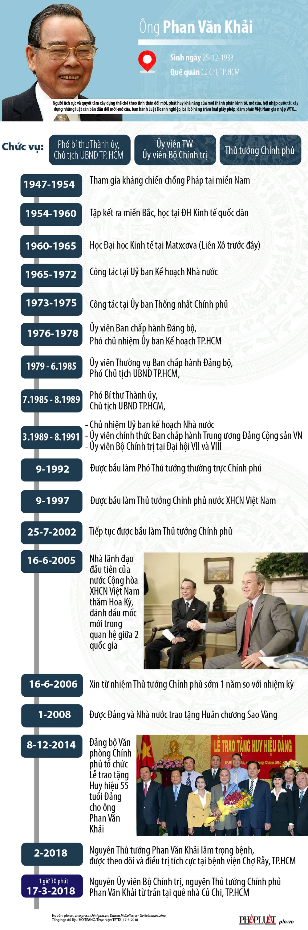 (PLO)- Nguyên Ủy viên Bộ Chính trị, nguyên Thủ tướng Chính phủ Phan Văn Khải đã từ trần vào hồi 1 giờ 30 ngày 17-3, tại quê nhà Củ Chi, TP.HCM.