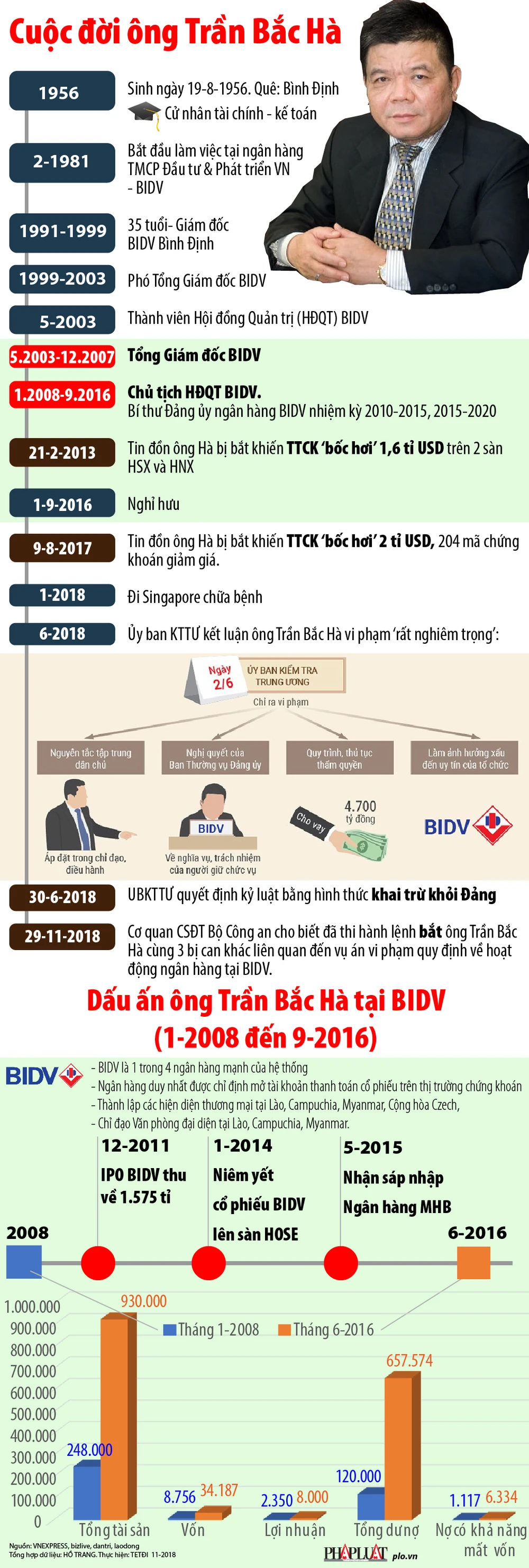 (PLO)- Ngày 29-11, Cơ quan CSĐT Bộ Công an đã thi hành lệnh bắt ông Trần Bắc Hà cùng 3 bị can khác liên quan... Rốt cuộc, sau 35 năm gắn bó với BIDV, ông tạo dựng nhiều thành công nhưng gần cuối đời lại vướng vòng lao lý.
