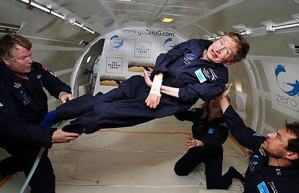 Tháng 4-2007, GS Hawking tự mình thử nghiệm cảm giác không trọng lực trên một chiếc máy bay.