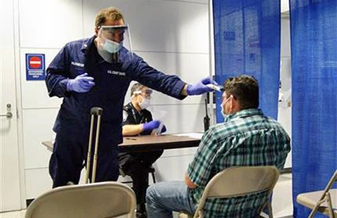 Ngày 16-10, hành khách đến từ Sierra Leone phải qua xét nghiệm ở sân bay quốc tế Chicago (Mỹ). Ảnh: AP