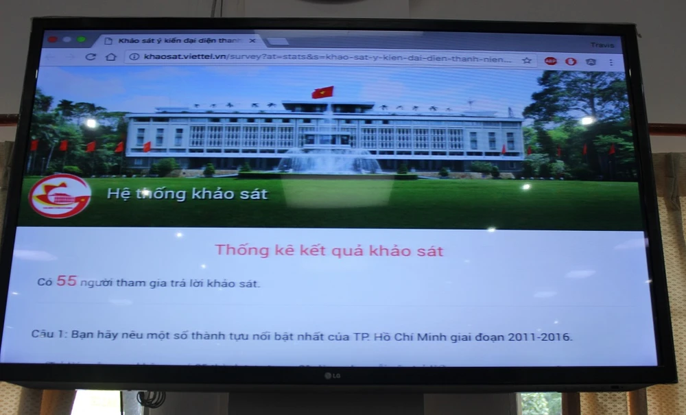 Trang khảo sát cũng có nhiều câu hỏi mở để các bạn thanh niên lựa chọn như: Bạn hãy nêu một số thành tựu nổi bật nhất của TP.HCM giai đoạn 2011-2016 (nêu ngắn gọn không quá 5 thành tựu). Hay như câu hỏi: Điều bạn tự hào nhất về những giá trị văn hóa của TP.HCM là gì; để TP phát triển nhanh và bền vững hơn, bạn có kiến nghị gì với lãnh đạo TP.