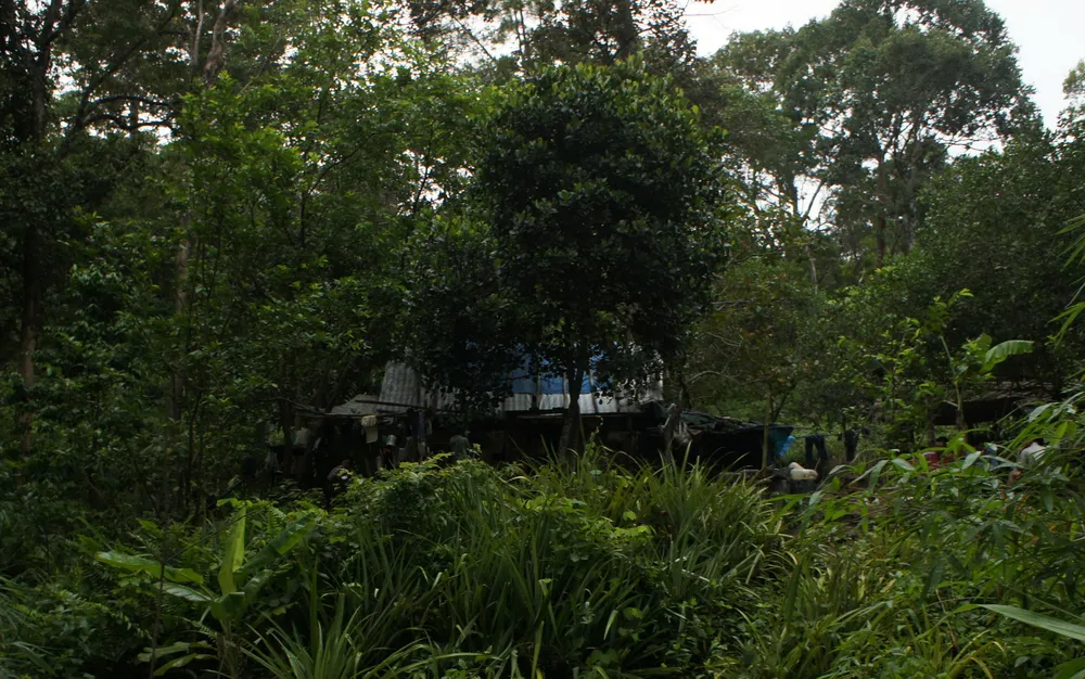 Túp lều rách nát giữa rừng này là nơi trú ngụ của sau con người gồm hai vợ chồng và bốn em bé