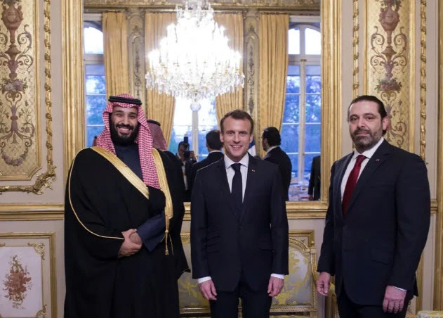 Mohammad bin Salman và tổng thống Pháp Emmanuel Macron. ẢNH: AFP