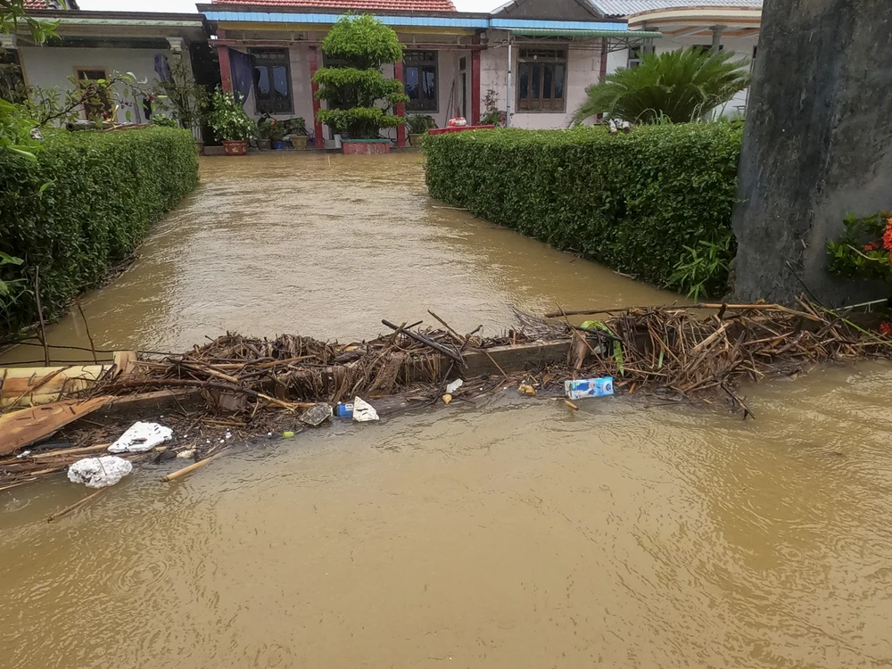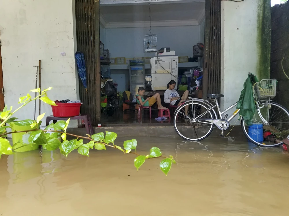 Nước từ sông Ô Lâu chảy vào khu vực dân cư, khiến nhiều khu vực người dân sinh sống cạnh sông Ô Lâu bị ngập sâu.
