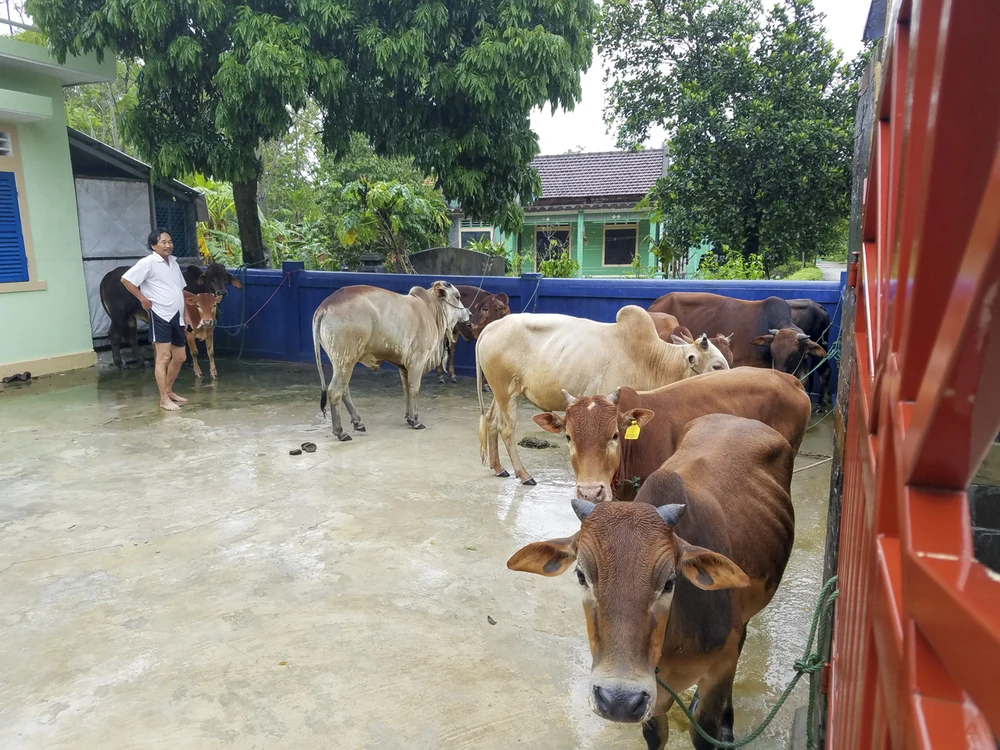 Đàn bò được đưa vào sân nhà, tránh trường hợp nước lũ tiếp tục dâng.