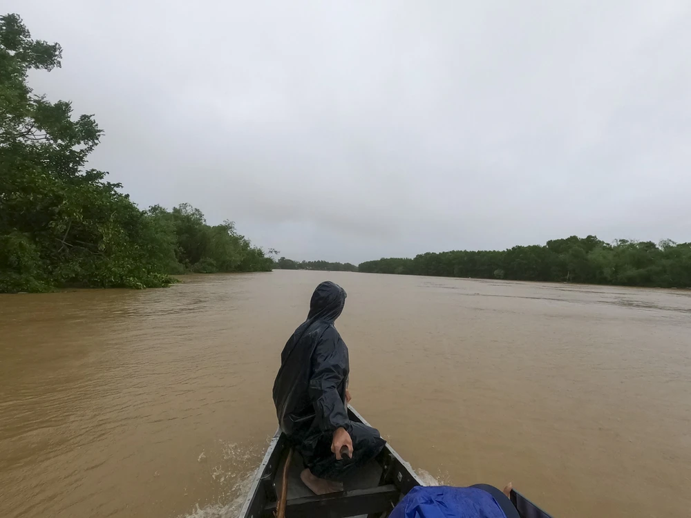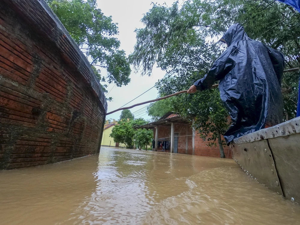 Sông Ô Lâu vào sáng 8-10 nước dâng cao dưới BĐ3 0,23 m, dự kiến trong 6 đến 12 tiếng tiếp theo lên mức BĐ 3. Trước mặt là nước sông Ô Lâu đang chảy xiết.