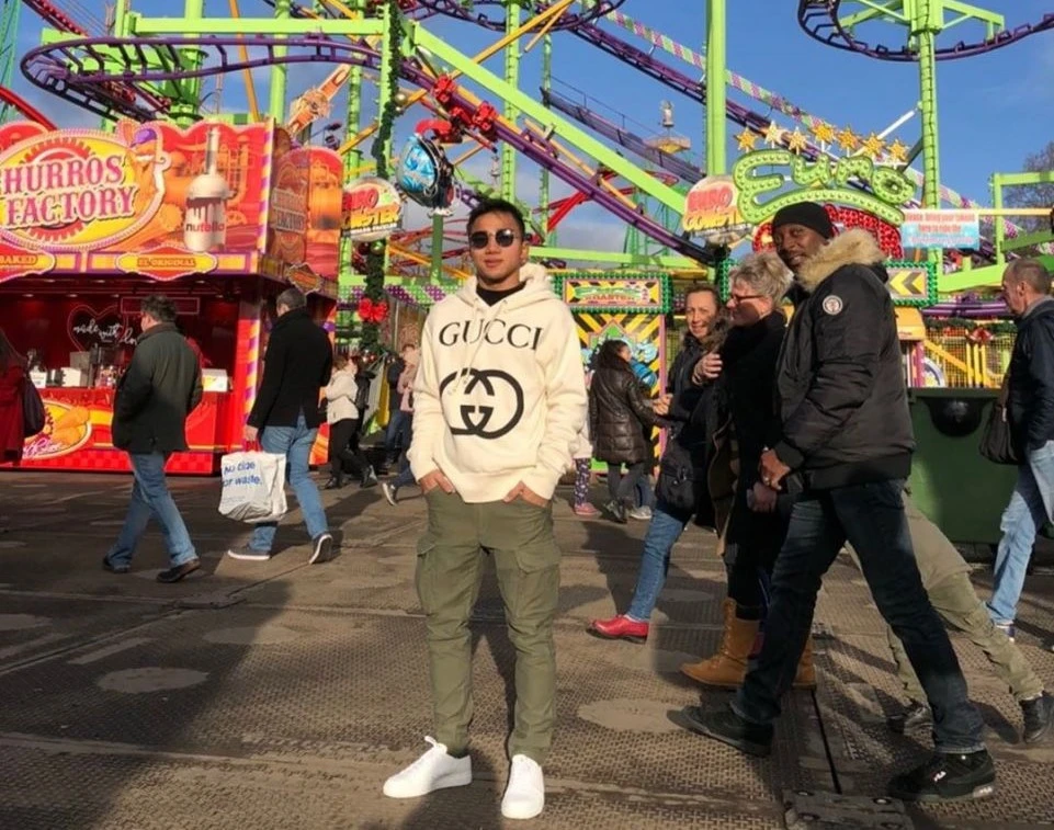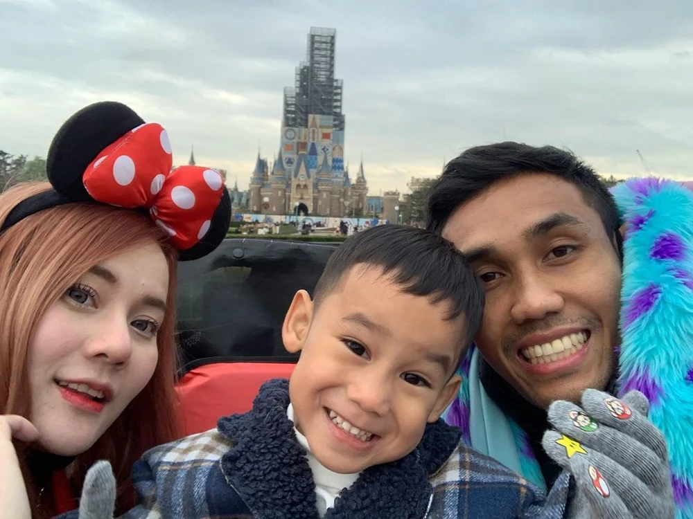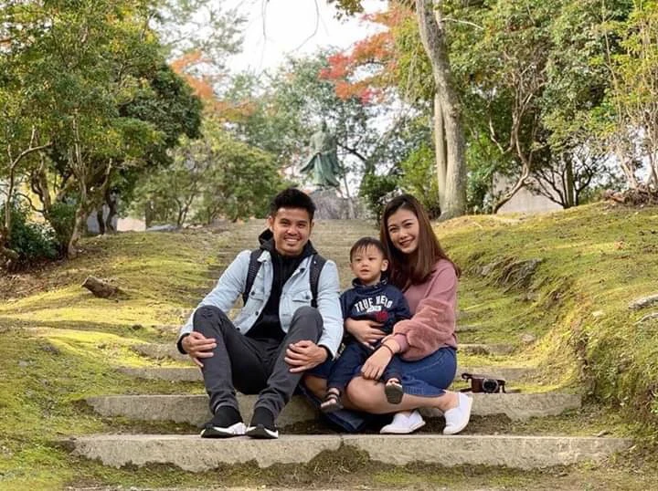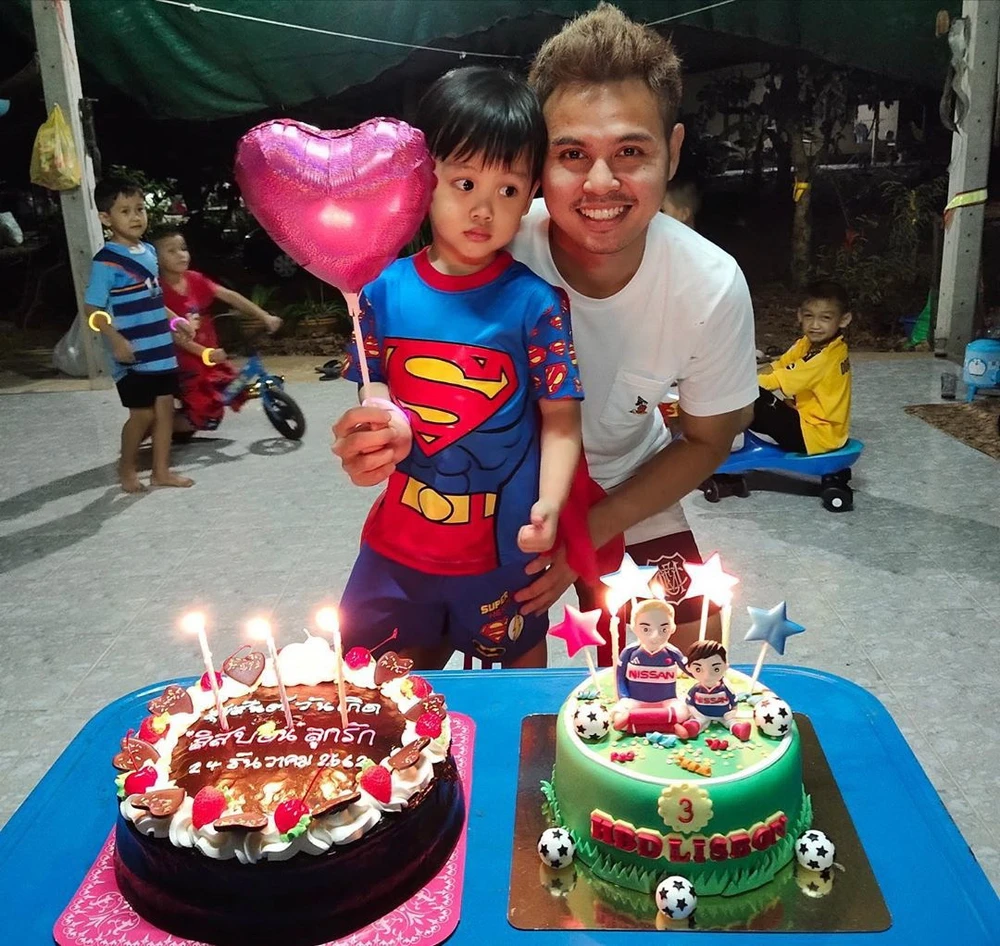 Chân sút khét tiếng 32 tuổi Dangda của tuyển Thái Lan hạnh phúc bên vợ con. Ảnh: SS