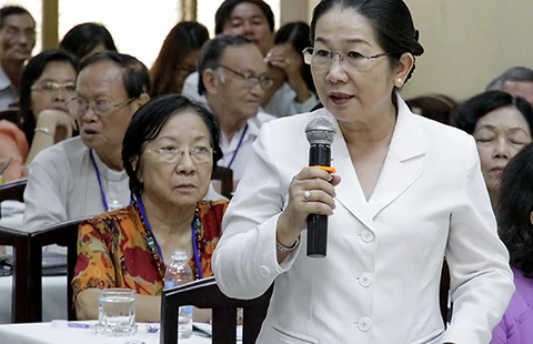 ĐB Võ Thị Dung, Trưởng ban Tổ chức Thành ủy TP.HCM, phát biểu tại Hội nghị hiệp thương lần hai đưa danh sách những người ứng cử ĐBQH khóa XIV và ứng cử ĐB HĐND các cấp. Ảnh: TTXVN