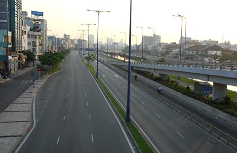 Một Sài Gòn ngái ngủ sáng mùng một tết. Ảnh: HTD