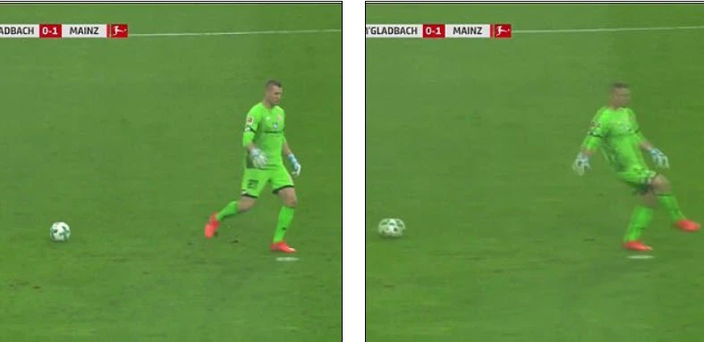 Khi mà tỉ số đang là 1-0 nghiêng về Mainz, bóng được Abdou Diallo chuyền về cho thủ môn Robin Zentner. Thủ thành của Mainz “bắt bước 1” đỡ bóng rất chuẩn. Tuy nhiên, anh lại ngớ ngẩn để bóng trôi khỏi chân mà không hề hay biết. Thủ môn này chỉ chăm chăm nhìn lên phía trên tìm đồng đội chuyền bóng. Sau khi đã xác định “mục tiêu”, Robin Zentner thực hiện đường chuyền vào… không khí bởi lúc này quả bóng đã cách anh một đoạn khá xa.
