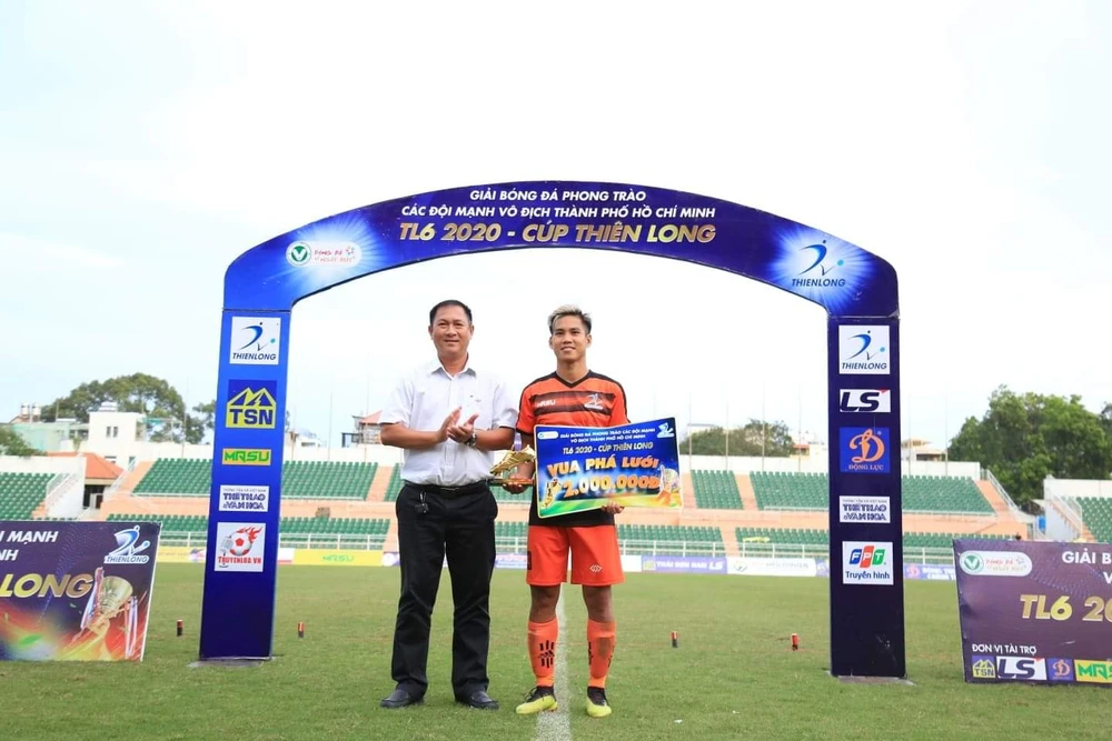 Nguyễn Thành Long Giang (Nghĩa Tình-Kim Ngân) đoạt danh hiệu vua phá lưới với 4 lần chọc thủng lưới đối phương. Ảnh: BTC