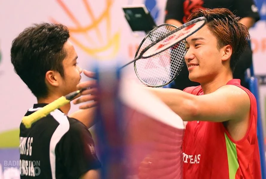 Anthony Ginting (phải) và Momota