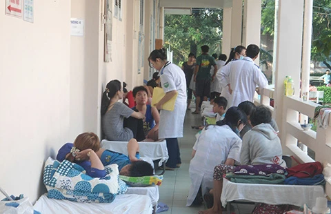 Bệnh nhân SXH tăng mạnh, chủ yếu là trẻ em, khiến các bệnh viện trở nên quá tải. Ảnh: HÀ PHƯỢNG