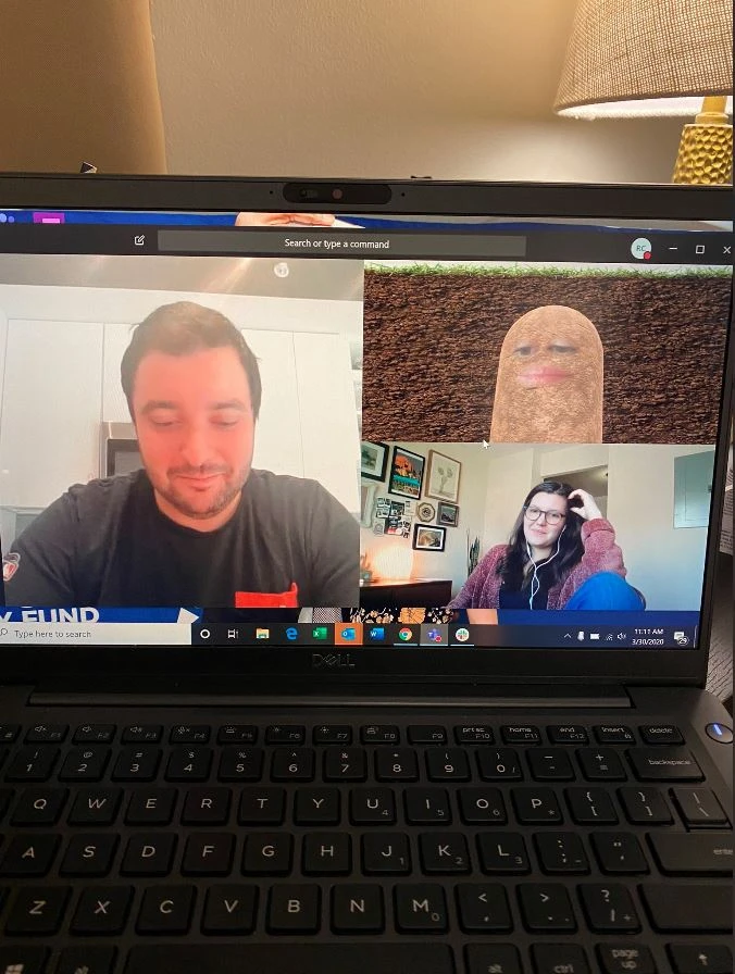 Cô sếp Ocampo trong hình hài củ khoai tây khi họp online với cấp dưới. Ảnh: TWITTER