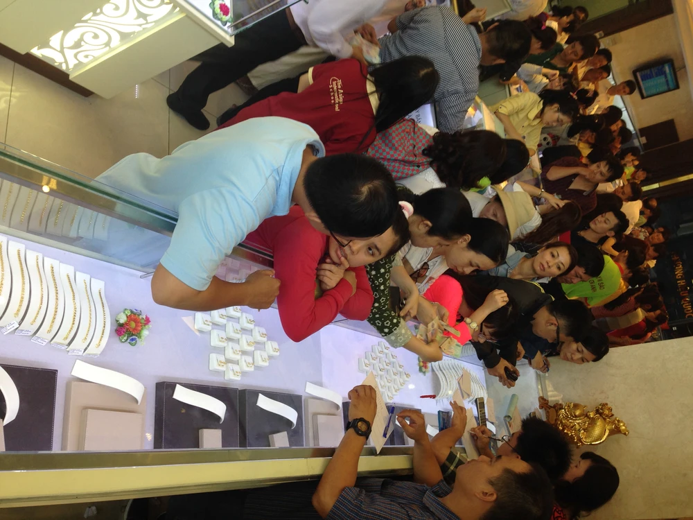 Một số hình ảnh người mua vàng đông nghịt tại SJC Nguyễn Thị Minh Khai. Ảnh Yên Trang