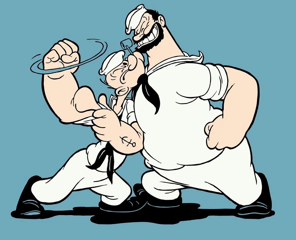 Thường thì trong các cảnh đối đầu, Popeye sẽ bị đánh phủ đầu nhưng mau chóng lấy được lợi thế với sự trợ giúp của rau chân vịt.