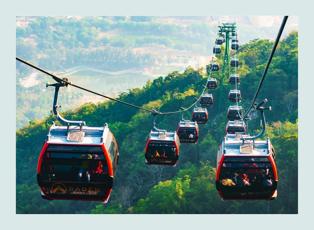 Các tuyến cáp treo lên chùa Bà và đỉnh núi hoạt động liên tục để đáp ứng lượng du khách. |