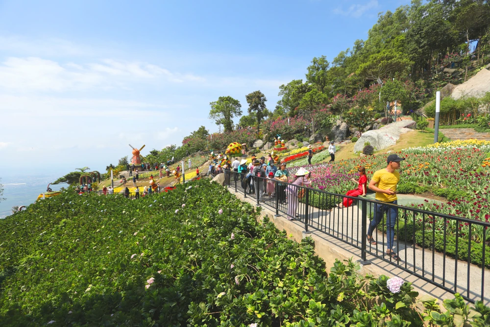 Sắc hoa trên đỉnh núi Bà Đen là điểm nhấn thu hút du khách đến đây. |