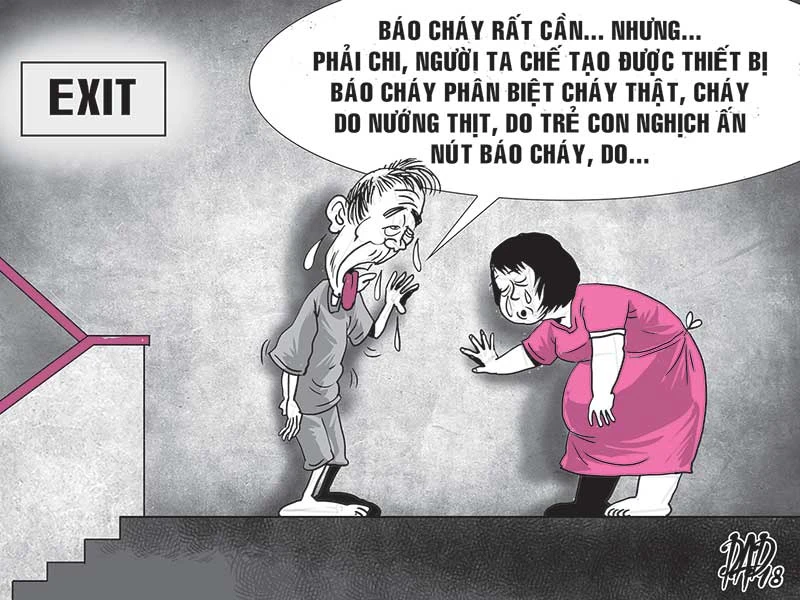 “Thằng nhỏ mới học lớp 2, nhà ở tầng 18, chẳng biết nghịch sao làm chuông hú rất lâu, cả chung cư náo loạn. Tòa nhà hơn 200 đầu báo khói, hơn 200 đầu báo cháy, nhân viên kỹ thuật thấy bảng điều khiển báo cháy ở lầu 19 nhưng lên kiểm tra thì không phát hiện, dò hoài cũng không ra. Tới khi chạy xuống lầu 18 mới té ngửa” - ông Minh kể.