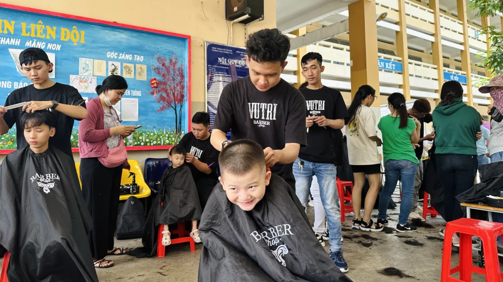 Chương trình cắt tóc miễn phí được nhiều người tham gia. Ảnh: TRẦN MINH |