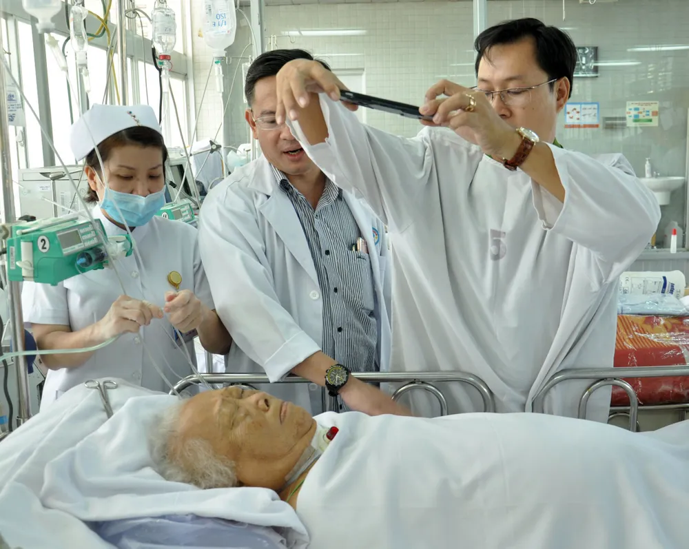 BS Dương Tiến Triển, Phó khoa Hồi sức Cấp cứu, cho biết bà cụ Tiêu nhập viện một tuần qua do đợt cấp của suy thận mãn, di chứng của viêm phổi đã mở khí quản (đặt ống thở) cách đây ba năm và còn kèm đái tháo đường tuýp II. Lần điều trị này phải mất cả tháng với phương pháp điều trị thay thế thận - lọc máu. Bệnh nhân có đáp ứng chậm nên phải kéo dài.