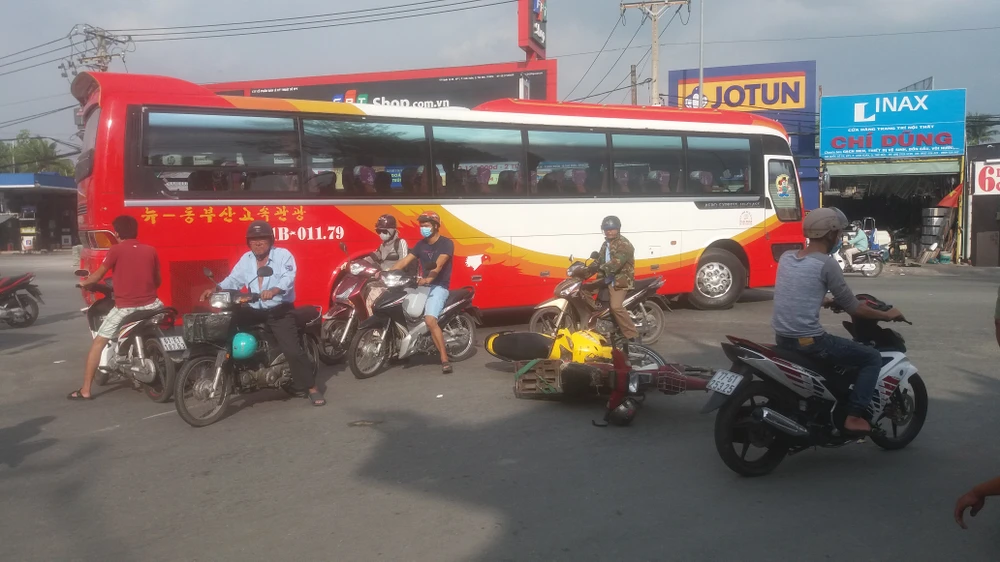 Vụ việc trên xảy ra vào khoảng 16 giờ chiều nay (6-6) tại tuyến quốc Lộ 1K, đoạn qua phường Linh Xuân, quận Thủ Đức, TP.HCM.