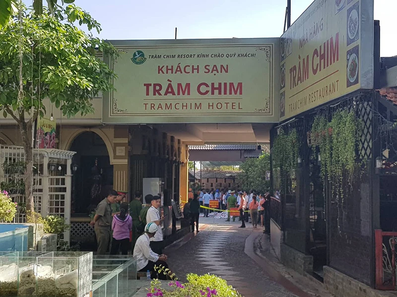 Công trình Gia Trang quán - Tràm Chim resort xây trên đất nông nghiệp đang bị cưỡng chế tháo dỡ. Ảnh: KIÊN CƯỜNG