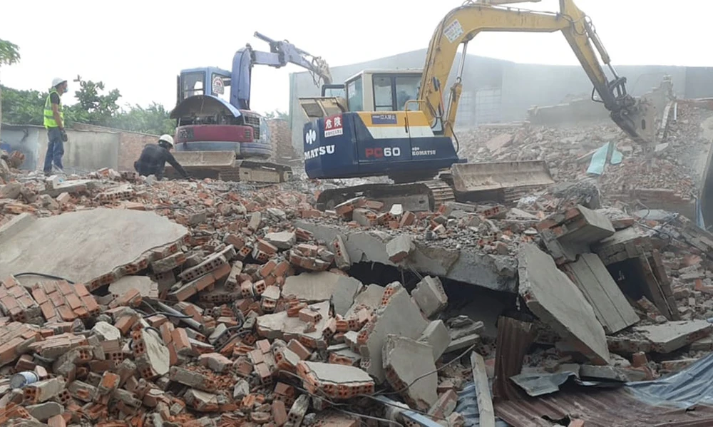 Một trong bảy công trình xây dựng trái phép đang bị lực lượng chức năng cưỡng chế. Ảnh: THANH TUYỀN
