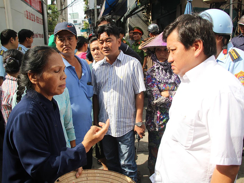 Sáng 1-12, ông Đoàn Ngọc Hải, Phó chủ tịch UBND quận 1, Trưởng đoàn cưỡng chế cùng hàng chục thành viên đã đến hẻm 41 Nguyễn Văn Tráng, phường Bến Thành để tiến hành cưỡng chế, di dời khẩn cấp 12 hộ dân sinh sống bên dưới hai thủy đài khổng lồ tại đây.