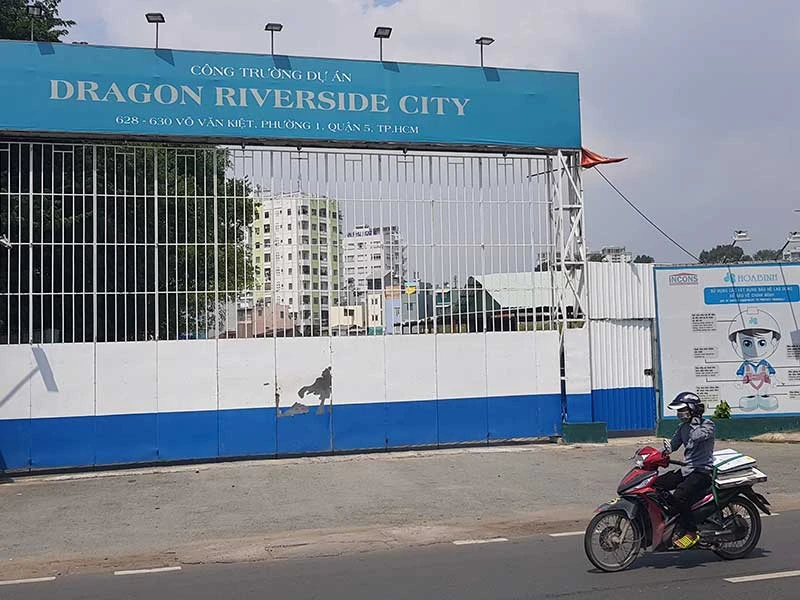 Dự án Dragon Riverside City do Công ty Cổ phần Bất động sản Sài Gòn Vina (Land Saigon) làm chủ đầu tư (CĐT). Công trình tọa lạc tại 628-630 Võ Văn Kiệt, phường 1, quận 5, TP.HCM với thiết kế hơn 1.000 căn hộ ngay vị trí đắc địa, trung tâm TP. Đáng nói, khu dự án với quy mô lớn là vậy nhưng lại chưa có giấy phép xây dựng mà đã tổ chức thi công được một số hạng mục. Mới đây, UBND TP.HCM đã có quyết định cưỡng chế tháo dỡ đối với phần xây dựng không phép của Dragon Riverside.