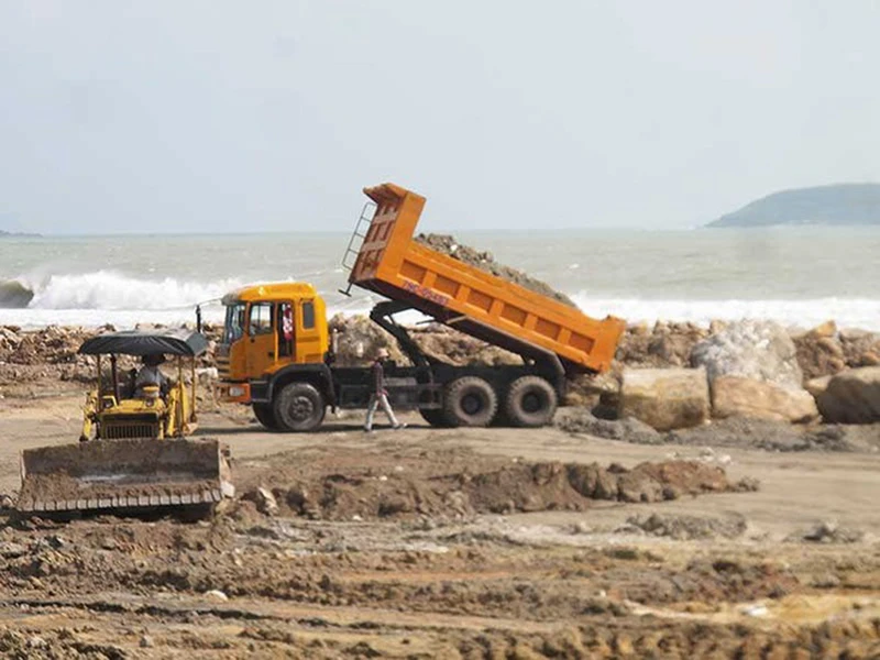 Đất đá của dự án Nha Trang Sao xâm hại vịnh Nha Trang. Ảnh: TẤN LỘC