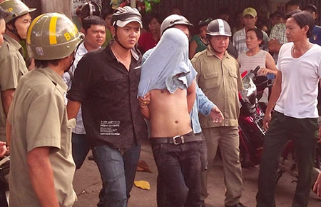 Lập tức tổ trinh sát hình sự đặc nhiệm đã cử người ở lại giúp đỡ nạn nhân và tổ chức truy đuổi hai đối tượng cướp giật. Truy đuổi khoảng 500 m, trinh sát áp sát xe của hai đối tượng, Hùng ngồi sau ném giỏ xách tang vật vào một con hẻm rồi xuống xe chạy bộ. Riêng Tuấn điều khiển xe máy chạy vào bên trong khu nhà trọ số 191 Dương Quảng Hàm. Vào thời điểm này những người ở trọ bên trong nhà trọ đã bỏ chạy tán loạn ra ngoài. Tuấn xông vào một phòng trọ, lúc này có hai cháu bé đang ở trong phòng bị Tuấn lấy hai con dao đe dọa nhưng hai cháu bé này đã may mắn chạy thoát ra ngoài. Sau khi khống chế con tin không thành, Tuấn đóng cửa cố thủ bên trong. Thấy đối tượng manh động, có hành vi liều lĩnh nên tổ trinh sát hình sự đặc nhiệm lập tức báo cáo sự việc về lãnh đạo Công an quận Gò Vấp. Ngay sau đó lực lượng cảnh sát 113, Công an phường 17, bảo vệ dân phố đã đến hiện trường hỗ trợ trinh sát. Ban đầu, lực lượng công an một mặt tổ chức bao vây khu nhà trọ, một mặt cử người tiếp cận đối tượng đấu tranh, thuyết phục để Tuấn buông dao, đầu hàng. Suốt 30 phút đồng hồ, Tuấn ngoan cố không chịu ra ngoài, liên tục vung dao chống đối. Tuy nhiên, sau đó Tuấn đã buông dao, mở cửa. Lập tức các trinh sát hình sự xông vào tước dao và bắt giữ Tuấn đưa về trụ sở công an.