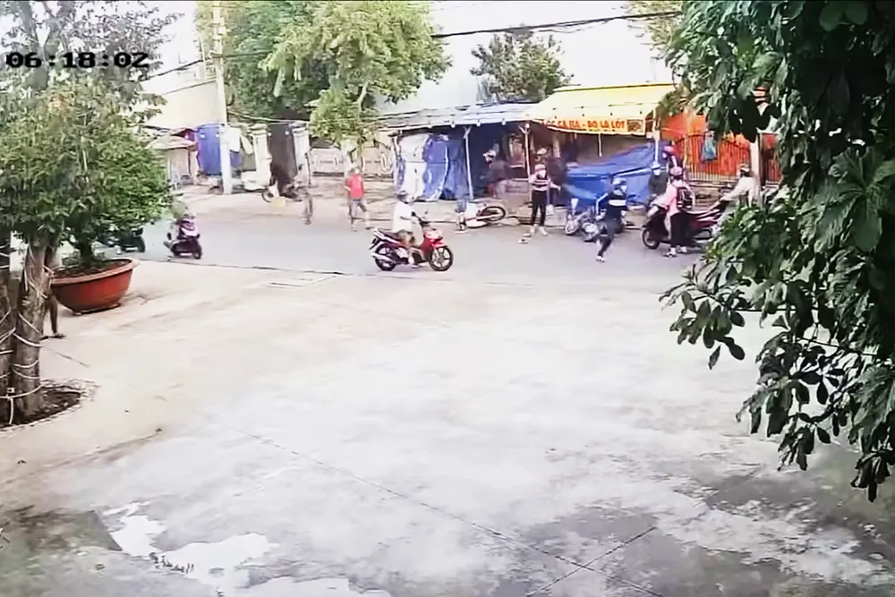 Ông LVT (62 tuổi) cho biết khoảng 6 giờ 15 phút cùng ngày, một phụ nữ điều khiển xe tay ga chở một nữ sinh đi đến trường thì có hai thanh niên bám theo, áp sát.