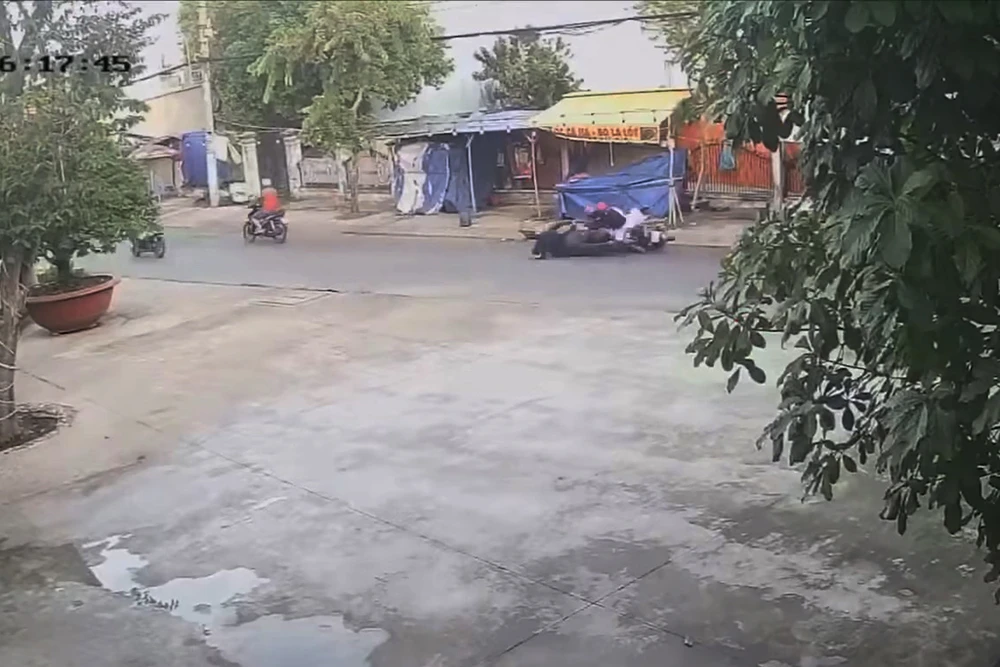 Tuy nhiên, hai bên giằng co khiến cả hai xe máy cùng ngã xuống đường, đè lên nhau. Hai thanh niên cướp giật vừa bò dậy tìm cách lấy xe nhưng bị mắc kẹt.