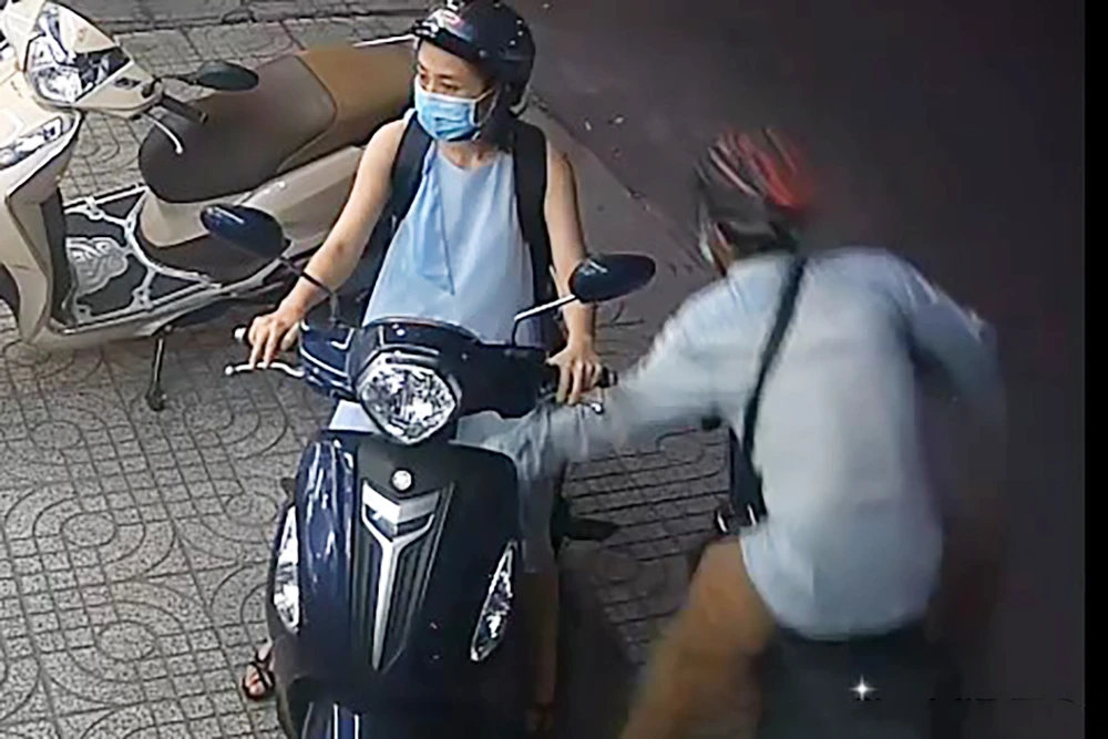 Quý chạy xe ngược chiều, áp sát nạn nhân rồi giật chiếc túi rồi tháo chạy tốc độ cao. Cô gái hoảng hốt hô hoán nhưng người đàn ông đã chạy xa khỏi khu vực.