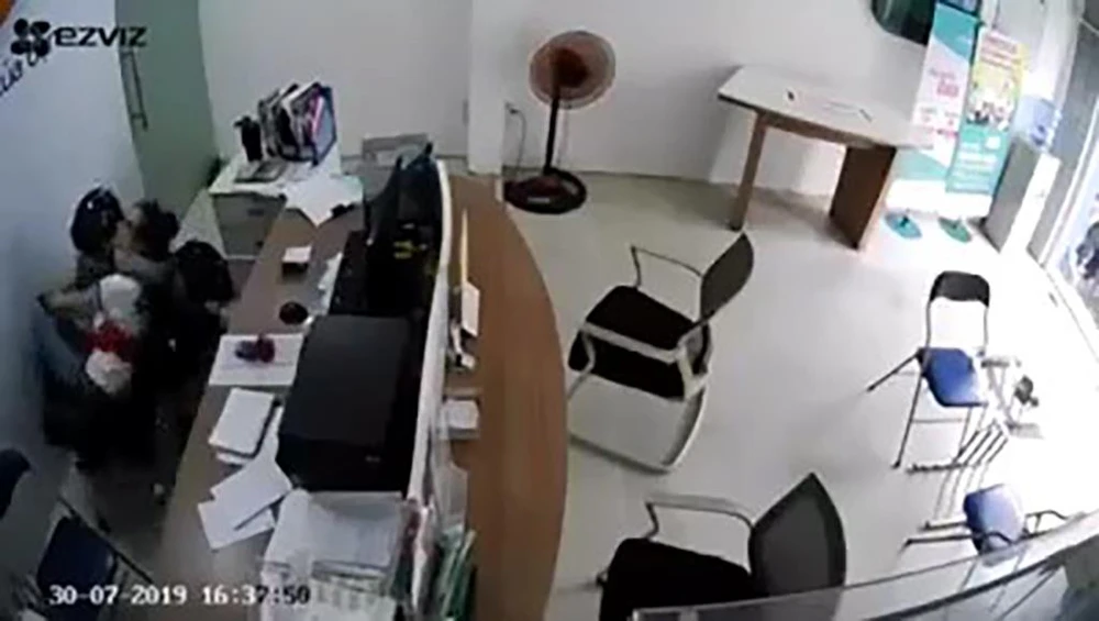 Trong lúc chị Ngọc mải thao tác trên máy tính thì thanh niên đi vòng ra đằng sau cầm dao kề vào cổ uy hiếp để cướp. “Tiền này là tiền của Nhà nước, mày muốn sống hay chết” - người này gằn giọng.