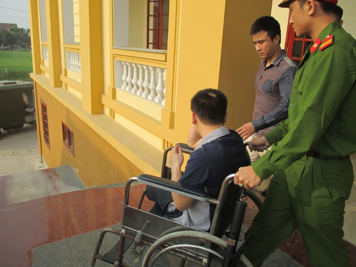 Cảnh sát đưa bị cáo Tương ngồi trên xe lăn về trại tạm giam