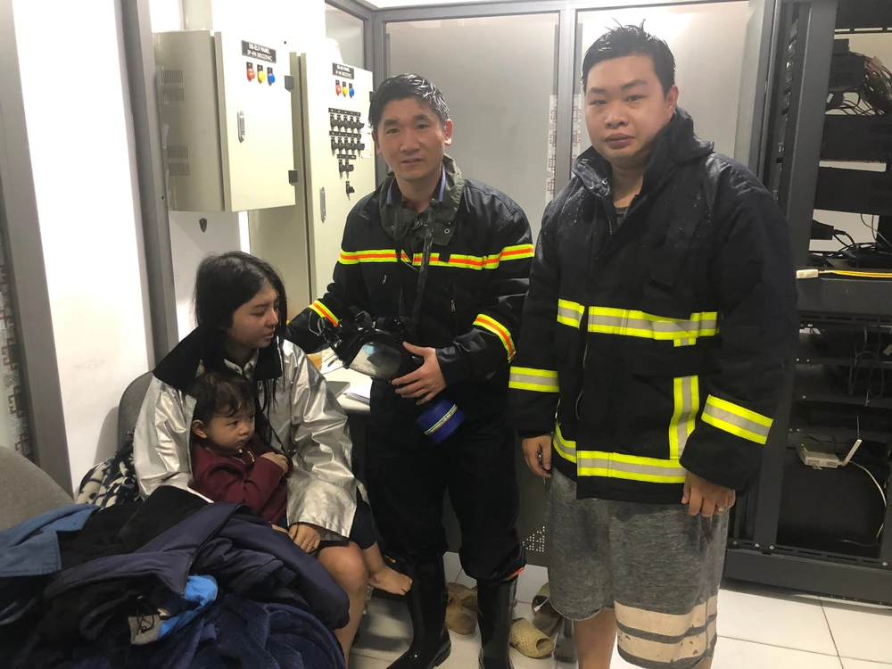 Các chiến sĩ đã dùng mặt nạ hỗ trợ ba nạn nhân, phun nước làm mát để cõng nạn nhân băng qua lửa ở phòng khách thoát ra ngoài hành lang an toàn.