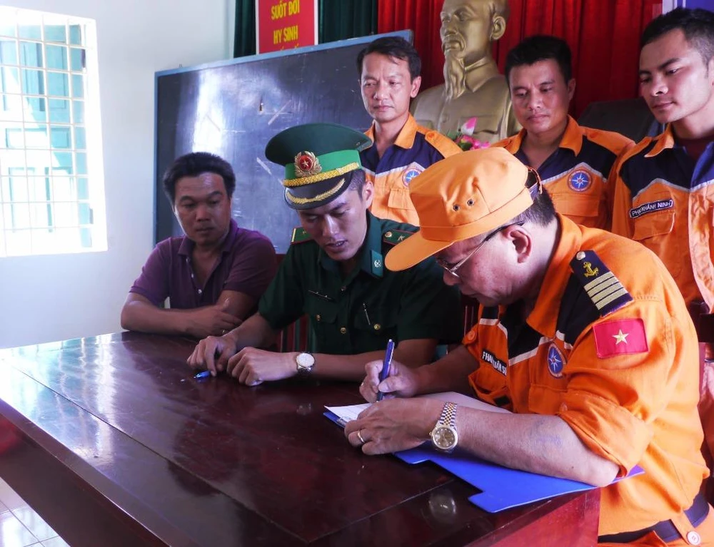 Làm thủ tục tiếp nhận ngư dân bị nạn. Ảnh: CTV