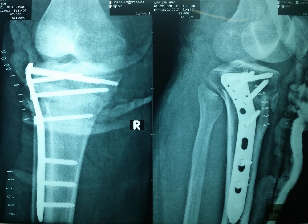 Trước đó, bệnh nhân LVH (33 tuổi, ở Long An) được một cơ sở y tế địa phương chuyển đến BV Chấn thương chỉnh hình TP.HCM với chẩn đoán gãy kín mâm chày chân trái.