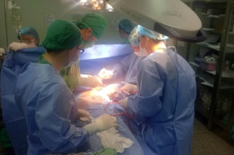 Các bác sĩ đang phẫu thuật tim cứu anh T. Ảnh: BVCC