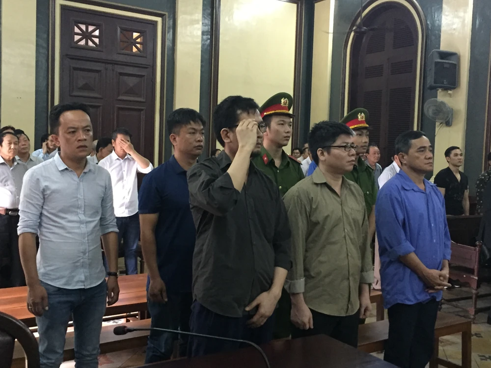 Bị cáo Hà (bìa trái, đeo kính) kế bên bị cáo Giang Lam...
